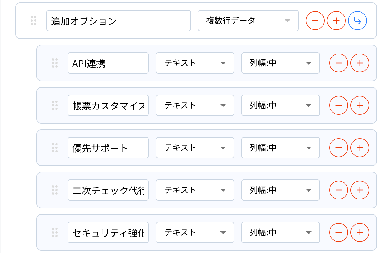 | 複数業データ | 表形式のデータ | 明細行(品名、単価、数量のセット)など |